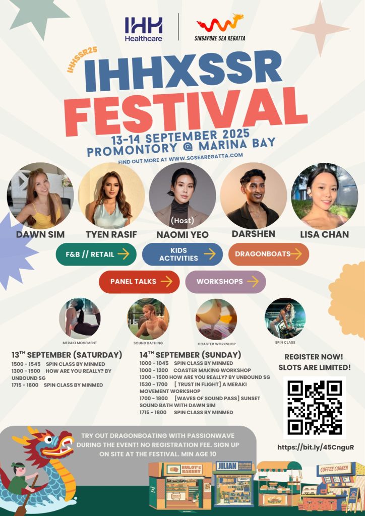 Don’t know how to dragonboat? IHHSSR 2025 brings you an opportunity to move your body too, all while staying nice and dry on land. Get sweaty with open-air spin classes, yoga flows, and influencer-led workouts right by the waterfront.