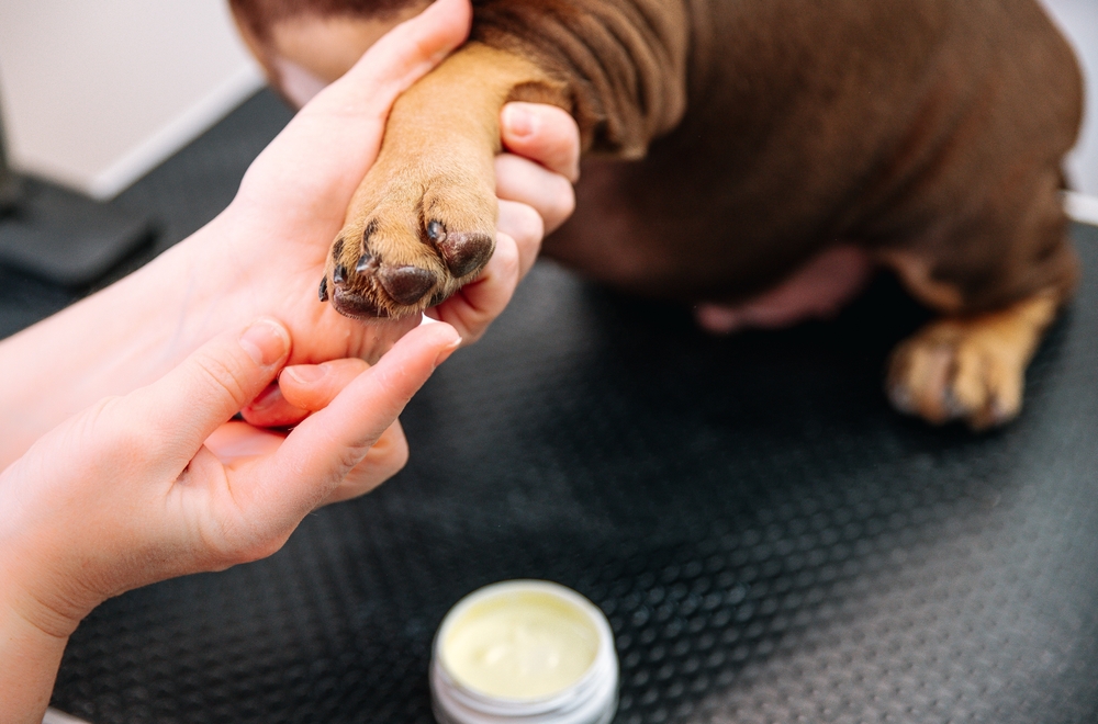 Neosporin is an common antibiotic ointment combination that can be used for small cuts or scrapes – on both humans and dogs.